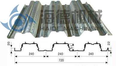 該機(jī)生產(chǎn)的鋼樓承板形狀簡潔、波度大、強度高、安裝時鋪置點焊鋼筋網(wǎng)后與混凝土現(xiàn)場澆灌結(jié)合,粘合性好。在高層建筑上既可以省去鋼模板又可以減輕樓層承載,在達(dá)到同等承受能力的前提下,使工程用鋼量減少,從節(jié)省投資。