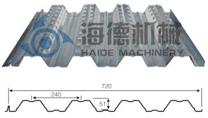 該機(jī)生產(chǎn)的樓承鋼板,用于樓層樓面板,具有波峰高、強(qiáng)度大等特點(diǎn),而且生產(chǎn)自動化程度高,成本低廉。