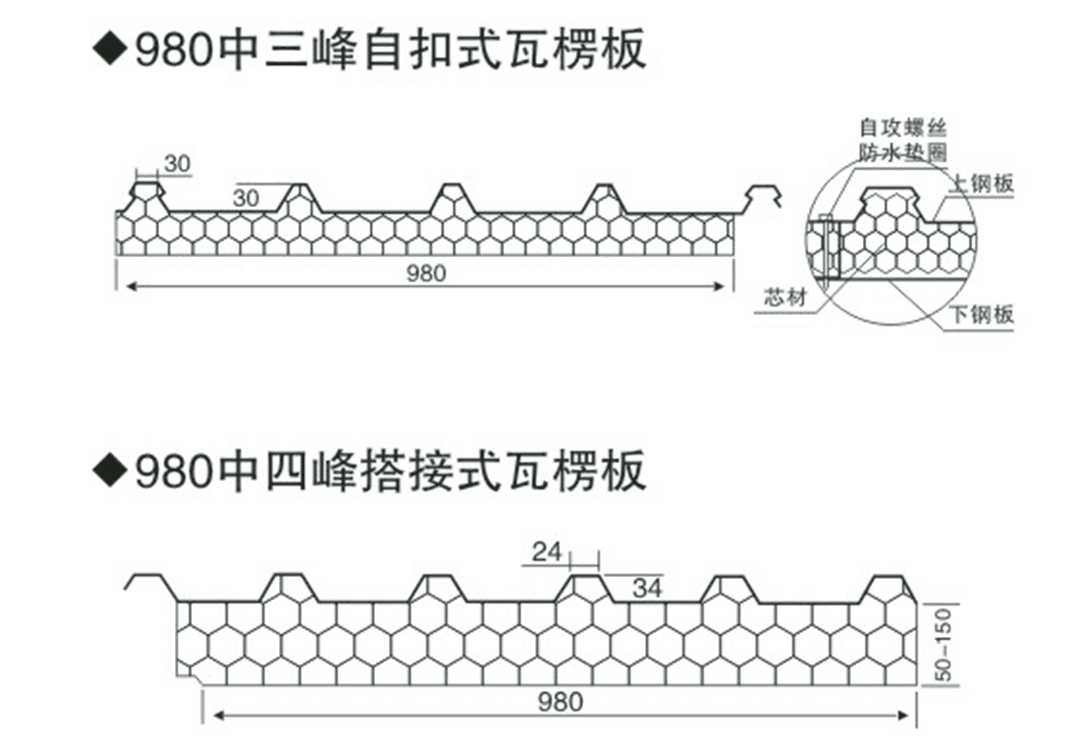 此設(shè)備生產(chǎn)的巖棉夾芯板由于使用了巖棉條90°反轉(zhuǎn)和錯(cuò)位排列的生產(chǎn)工藝,生產(chǎn)出的夾芯板表面平整,板體有力,粘合力強(qiáng)。特有的板型設(shè)計(jì),兩側(cè)不用封邊鋼帶,全巖棉內(nèi)置,接口處緊密,避免了搭接口的冷橋現(xiàn)象。提高了板材的保溫效果。本公司產(chǎn)品是彩鋼建材行業(yè)的理想選擇。